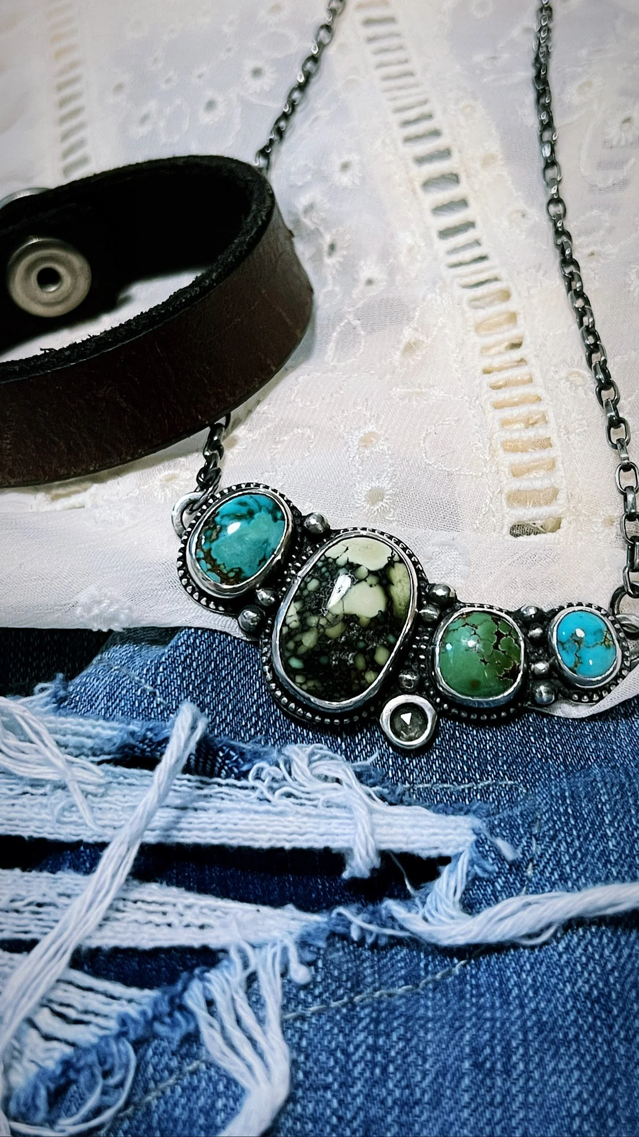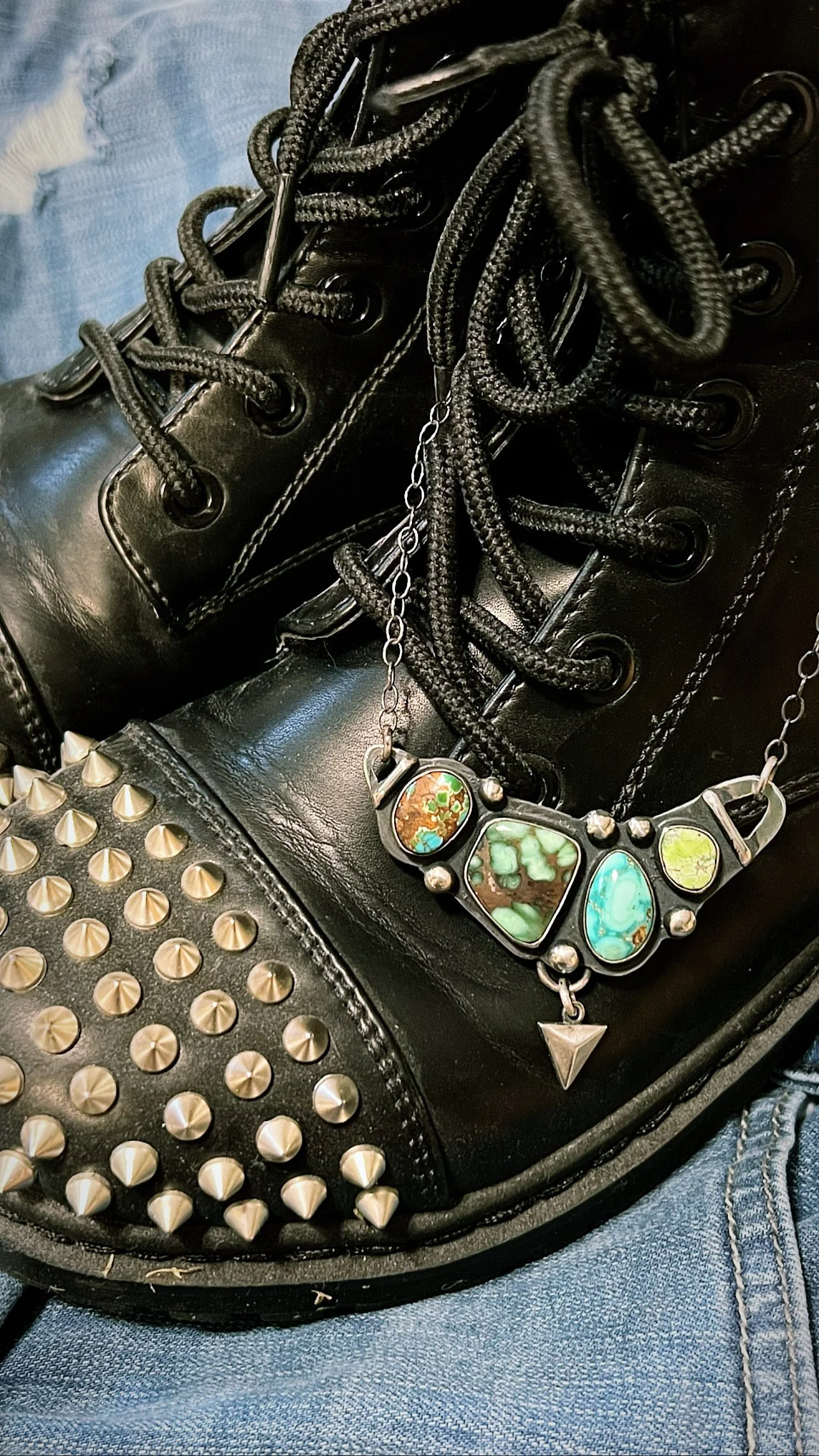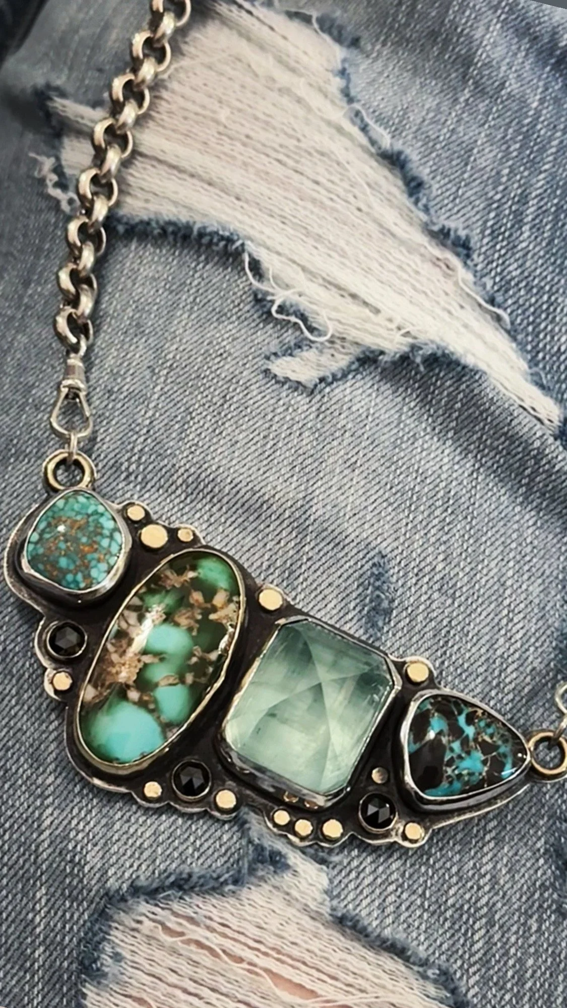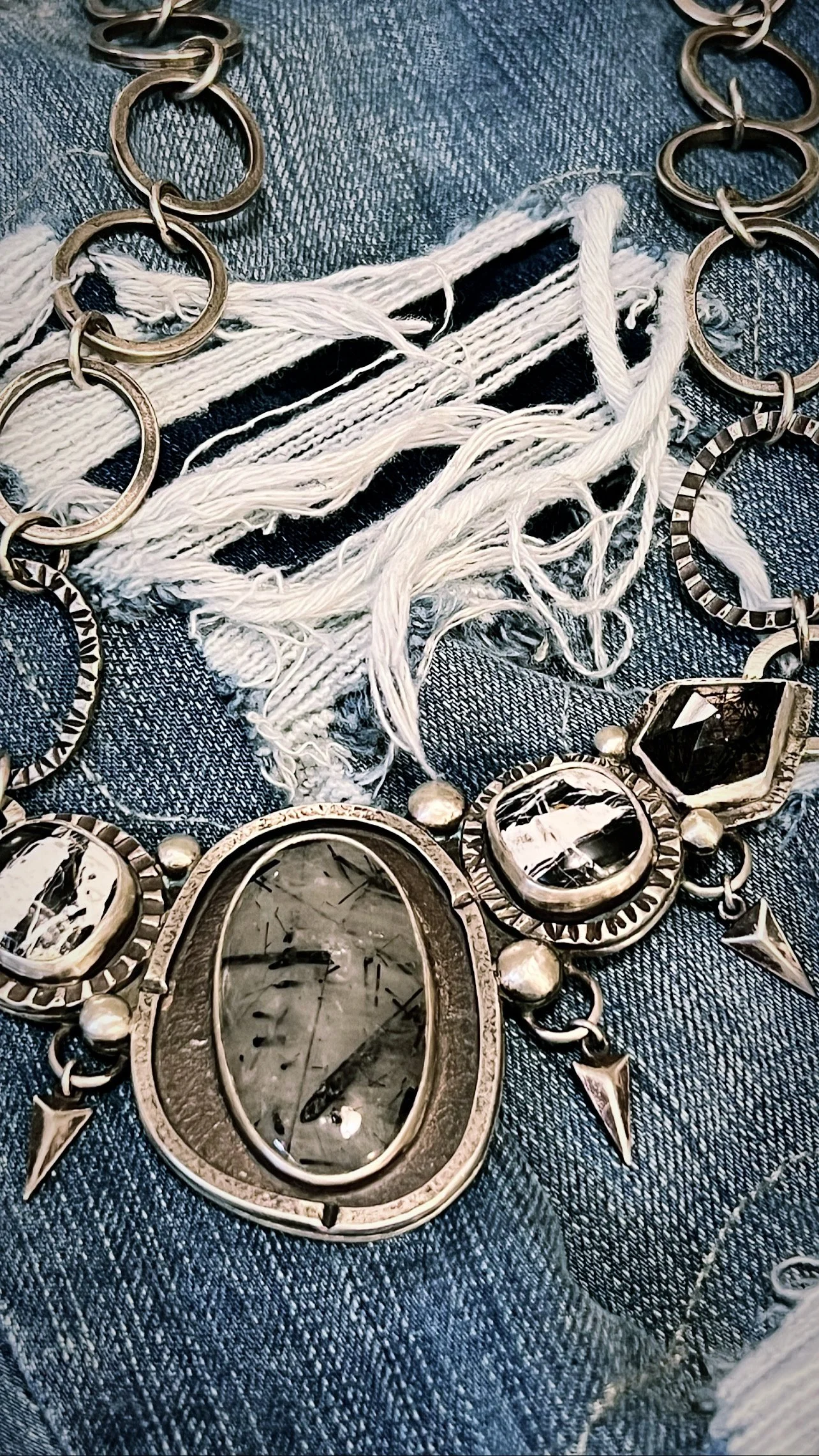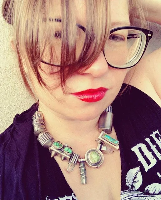 Jenvy Fox in the original version of the Junkyard Masterpiece Necklace.