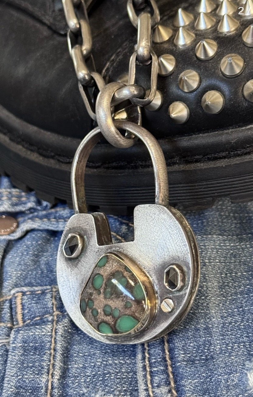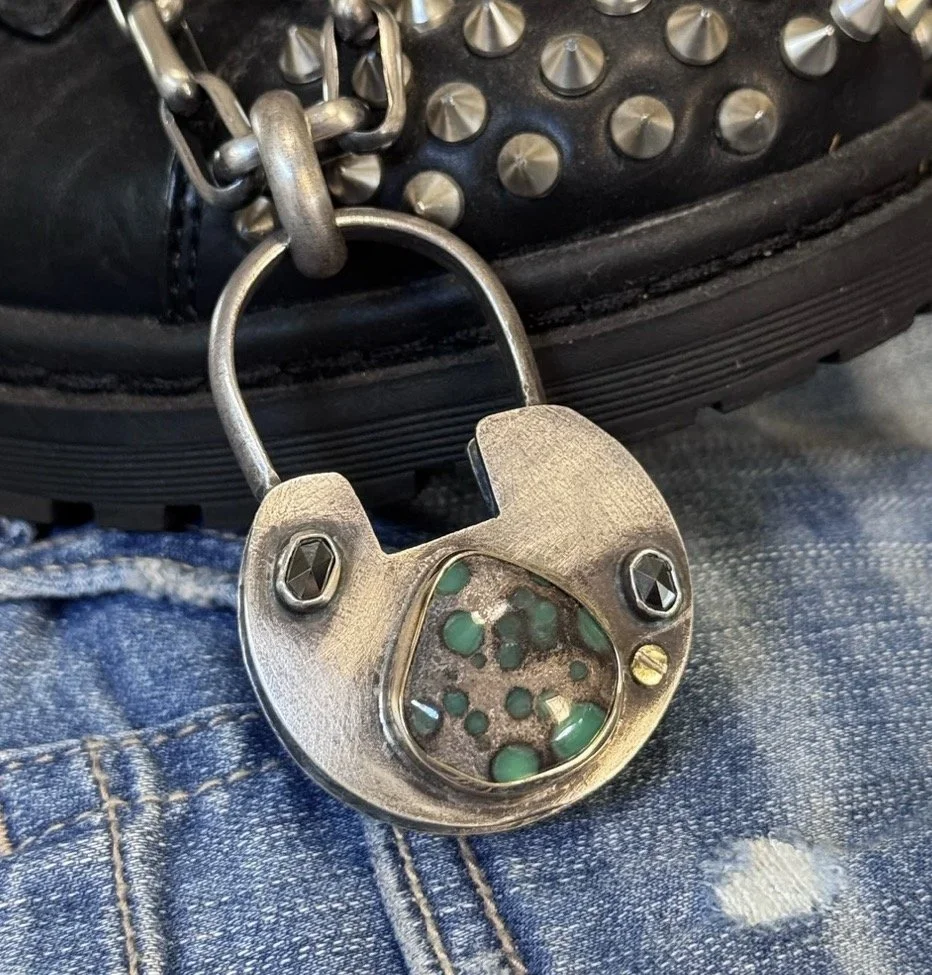 Punk Rocks by Jenvy Fox Categories: All Punk Rocks Punk Rock Boxes Punk Locks and Keys All Jewelry All | Punk Rocks | Punk Rock Boxes | Punk Locks and Keys | All Jewelry | Punk Rock Heart #2 $75.00 Heart Punk Rock #1 $55.00 One Gram Sterling Silver Heart Charm $18.00 “True Love” Royston Heart Pendant $125.00 “Summer Love” Damele Heart Pendant $95.00 “Daylight” 7 Dwarfs Heart Pendant $75.00 “Blue Jean Baby” Turquoise Heart $165.00 Sterling and 14kt gold Punk Lock $1,125.00 Size Large Punk Pyramid Pendant $695.00 Size Medium Punk Pyramid Pendant $725.00 Sterling silver peridot circle pendant $265.00 High grade Damele circle pendant $325.00 Royston turquoise circle pendant $265.00 Damele Punk Lock $725.00 Carico Lake Punk Rock $525.00 Three Stone Skull Ring $825.00 “Running up that Hill” - Damele Statement Ring $1,075.00 “Rock Legend” Rockstar Necklace $1,725.00 Size Medium Punk Pyramid Pendant $725.00 Stone collector pendant $725.00 Earth Mother Statement Ring $1,225.00 Damele pebble pendant $525.00 Damele pebble pendant $525.00 “Sweater Weather” - Damele cluster ring $825.00 Sterling silver and brass damele pendant $375.00